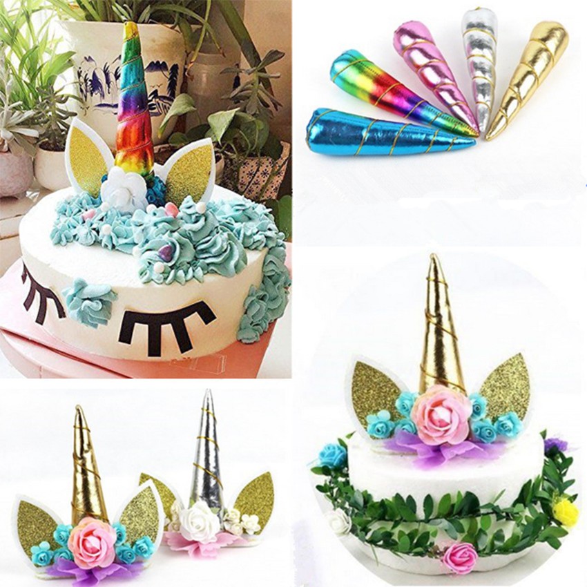 Gold Silver Pink Unicorn Horns Cake Topper Kids Birthday Baby Cake