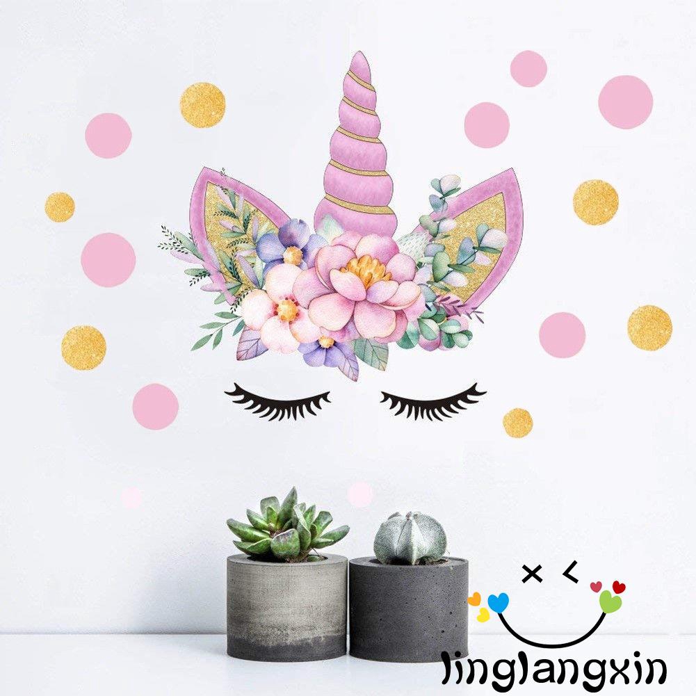 Cute Flower Dot Unicorn Art Wall Sticker Kids Girls Bedroom Decal