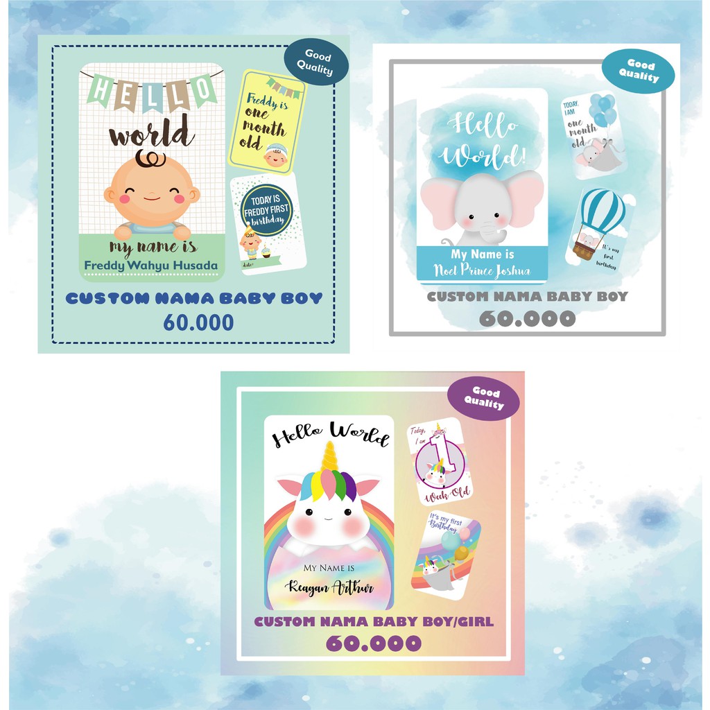 Banyak Tema Custom Nama Baby Boy Unicorn Milestone Card 1 Hari