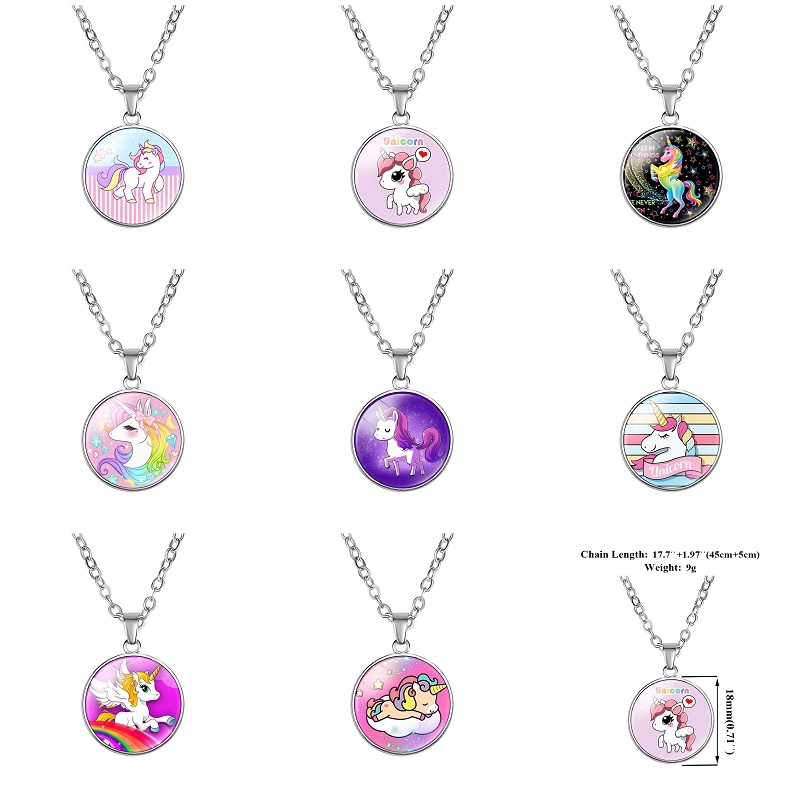Kids Cute Cartoon Colorful Unicorn Necklace Pendant Chain Jewelry